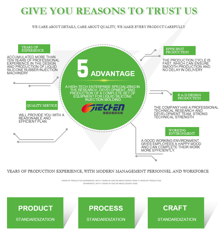 Company profile:Dongguan Jiechen Silicone Rubber Machinery Co., Ltd. is a high-tech enterprise specializing in R & D and manufacturing of liquid silicone rubber injection molding machine. The company has a professional technical research and development team, strong technical strength and perfect after-sales system to provide strong technical and service guarantee for customers. The company has advanced equipment, perfect technology, strong technical force, accumulated more than ten years of professional liquid silicone rubber injection machinery design and production experience, obtained a number of invention patents, reached the leading technical level in the industry.The company's liquid silicone rubber injection machine is widely used in medical, maternal and infant, auto parts, electronics, stationery, kitchen, diving, bathroom and other fields, and developed precision micro liquid silicone injection machine, liquid silica gel (solid to liquid) intelligent feeding machine, all-round to meet the needs of different customers."Liquid injection, Jiechen service" is the same principle we always adhere to. We welcome friends from all walks of life to guide and negotiate business!Contact person: Mr. Chen RuizhongTel: 86 0769 26628975Mobile: 13038846085Fax: 86 0769 26628579Address: Ji erheng Road, aoshitang Industrial Zone, Dongcheng, Dongguan, Guangdong, ChinaOfficial website: //t4984.cnCompany homepage: //www.jt4984.cn//jiechenjx.1688.com