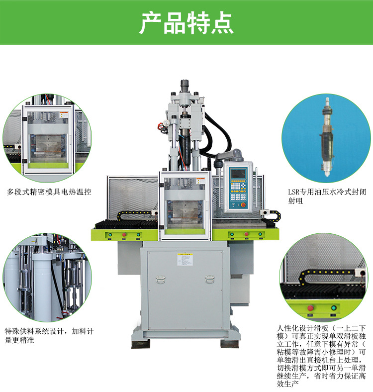 85吨立式液态硅胶射出成型机的产物特色: